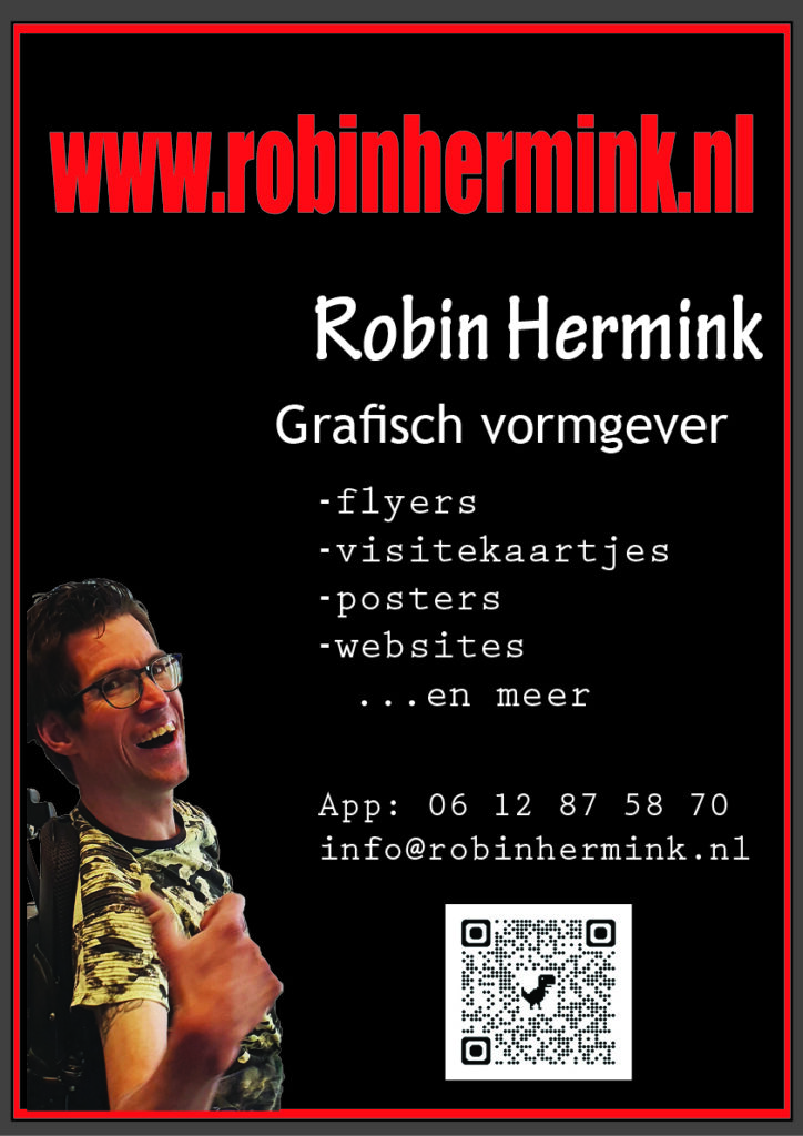 poster groot mijn flyer groot De Robin Hermink banner groot Het Robin Hermink T-shirt invaliden auto visitekaartje de grafisch vormgever robin hermink poster beachflag Robin Hermink mijn 2e flyer promotie nieuw Klik hier om te delen